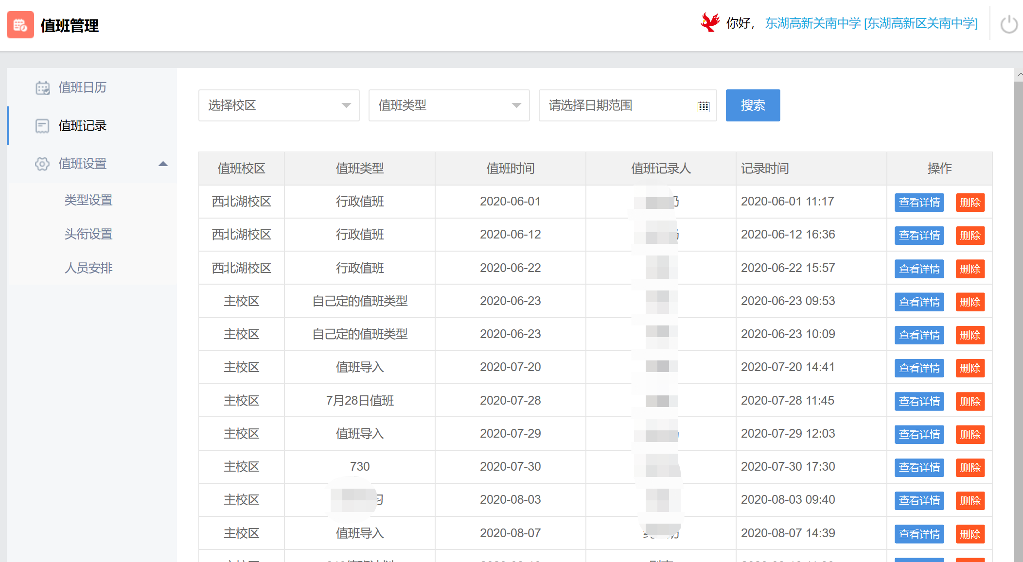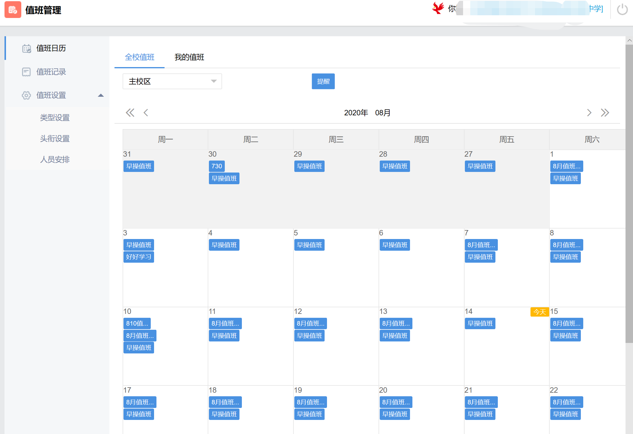 值班管理是对学校用来行政值班、教师值班进行统一安排和管理,记录值班过程和统计值班结果的一个产品。管理员可以自定义值班类型与值班人员,并可以新增值班日历及值班表。值班人员录入值班情况后,可形成值班记录表,供其他教师与领导查看。